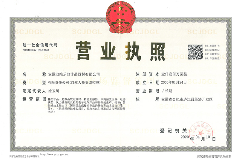 安徽迪維樂普非晶器材有限公司從2013年起至今每年捐贈安徽省合肥市廬江縣長崗中學(xué)和廬江縣水關(guān)中學(xué)助學(xué)金8萬元。